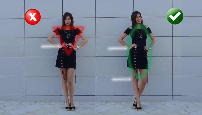 ¿Esto qué significa? No todas las poses son beneficiosas para todos los cuerpos. Tenemos diferentes proporciones y estaturas, y nuestra vestimenta influye en la forma visual de nuestra figura.